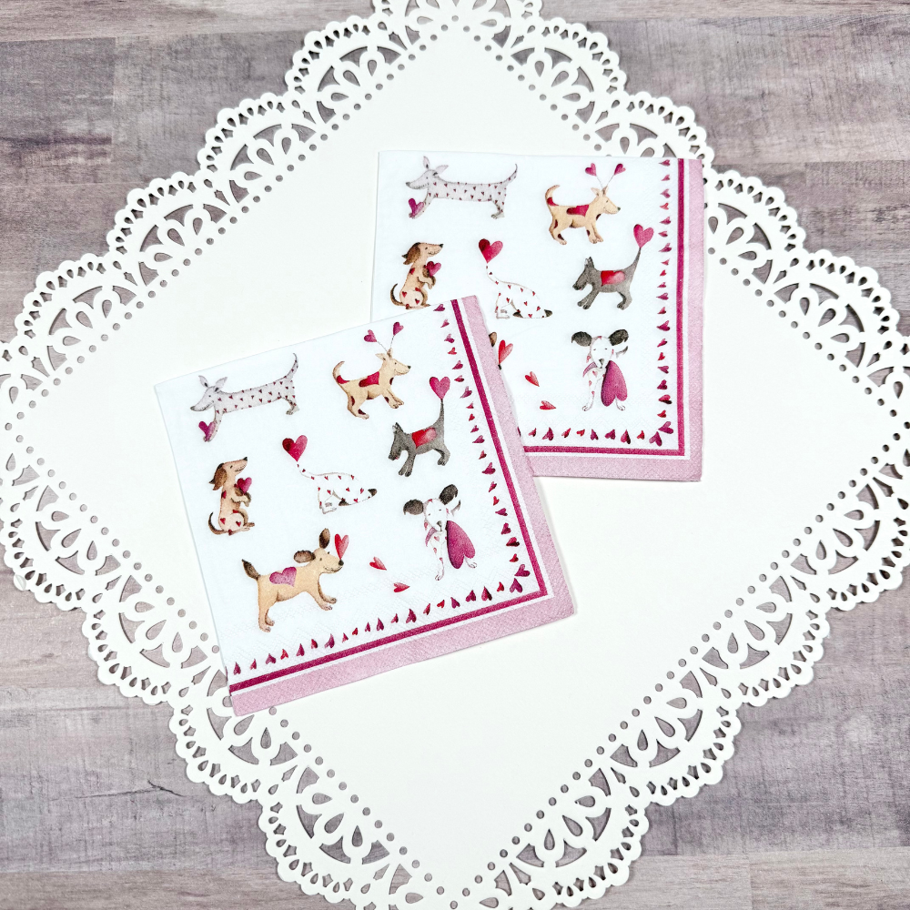 Love Heart Dogs Decoupage Napkins