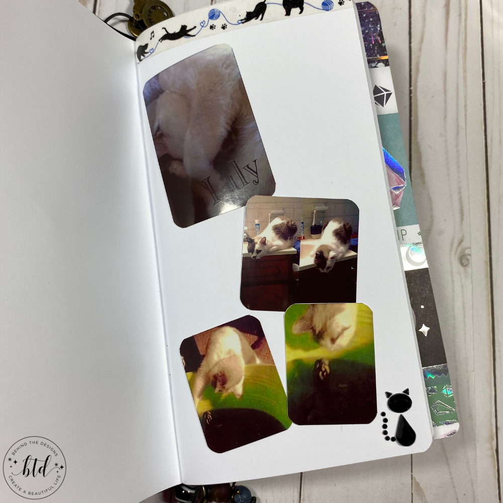 To get her started her started with some memory keeping I created her first journal page. I used my Canon Ivy mini photo printer to print some pictures of her cat, Lily (who she adores!). I added some cat themed washi at the top and a cute black cat gem sticker at the bottom. Now she can write a journal page or simply add more pictures to the opposite side.