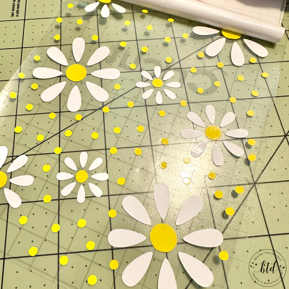 - Step Three: Line up the daisy petals to the yellow vinyl layer, burnish and removing vinyl backing. You now have two vinyl layers on one piece of transfer tape.