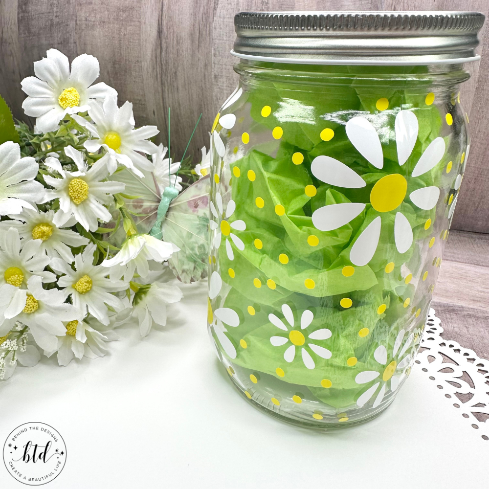 - Cricut Designs Space Project (search for): “Daisy Wrap For Square Glass Jar” by Myra Luy-Aban