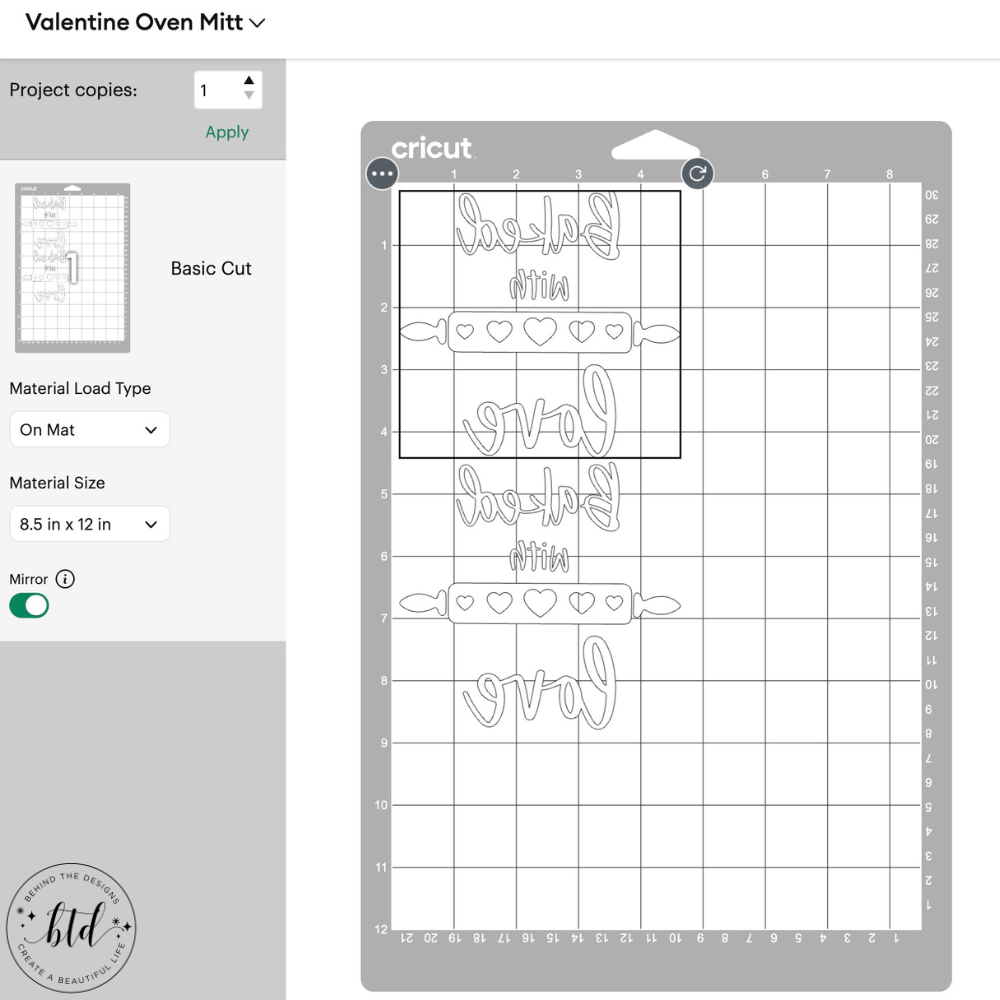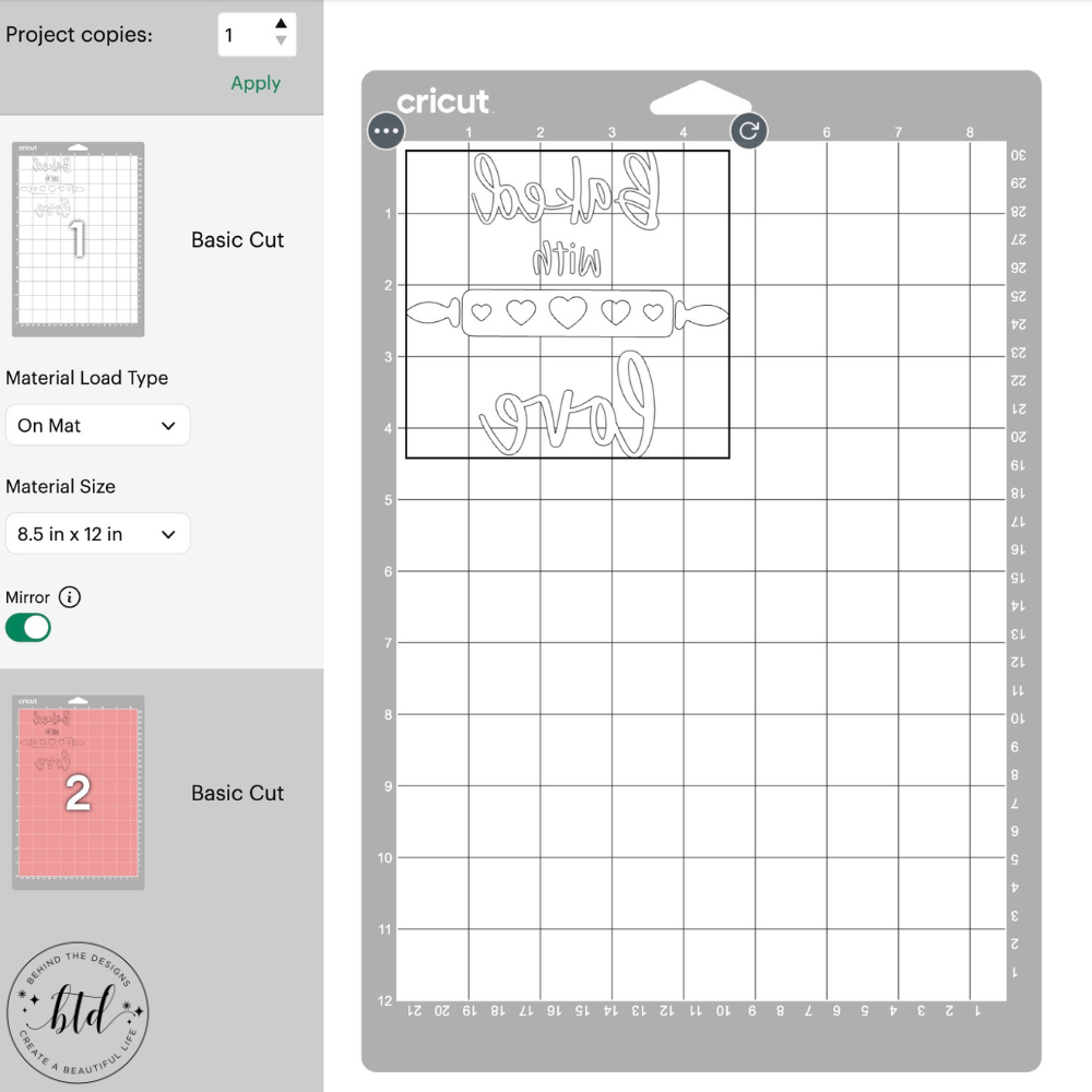Before cutting, remember to select the “mirror” option for your project.