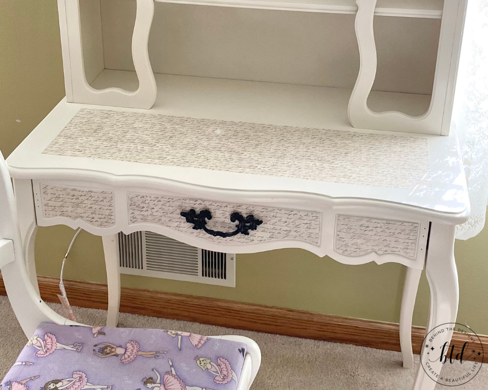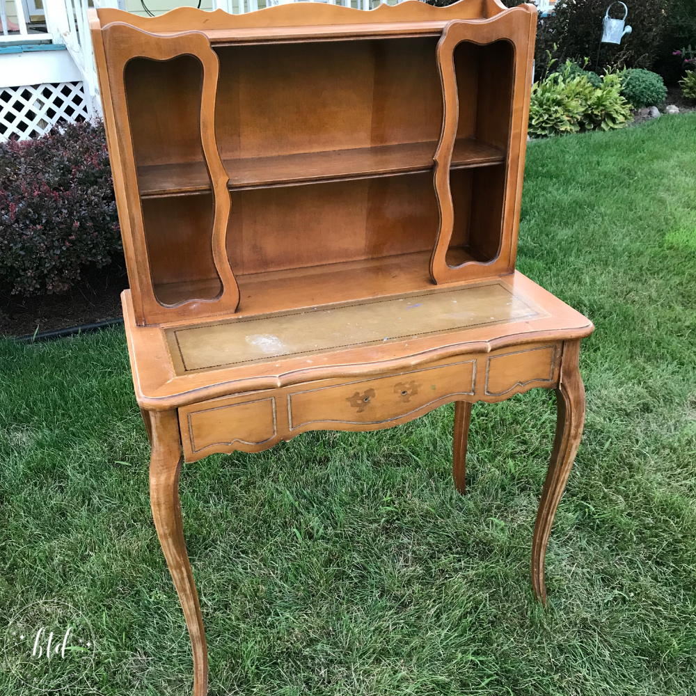 This vintage desk was gifted to my daughter by her aunt. It came with no background or history as the aunt wasn’t sure of the track it took to get into her hands. I’m not quite sure if it is a makeup vanity or desk. But, it was a perfect fit for my daughter and the chair she already had.