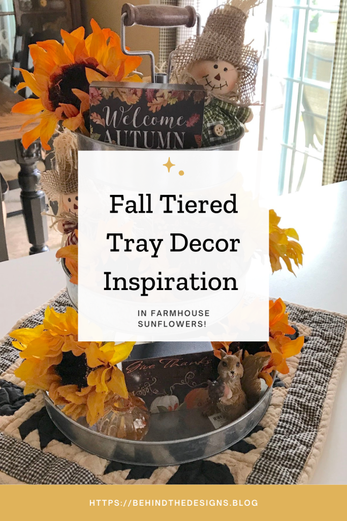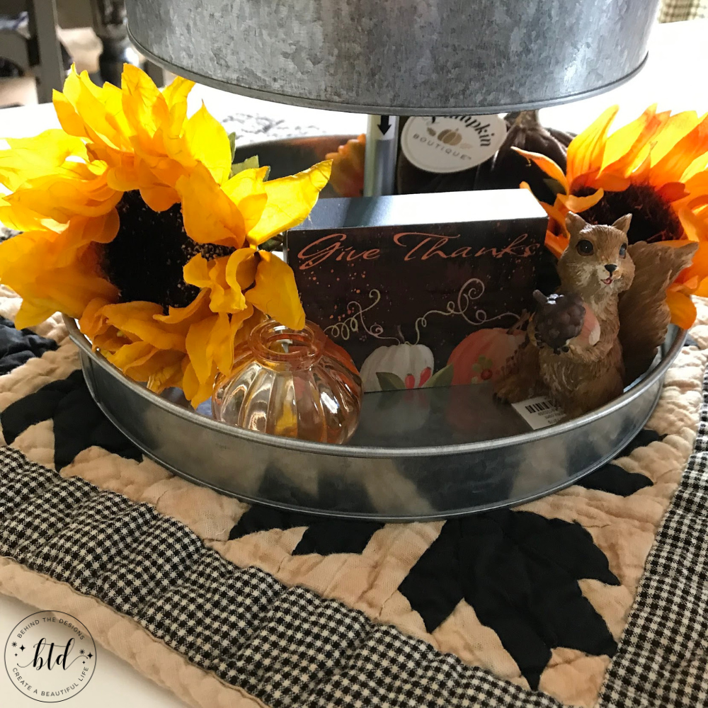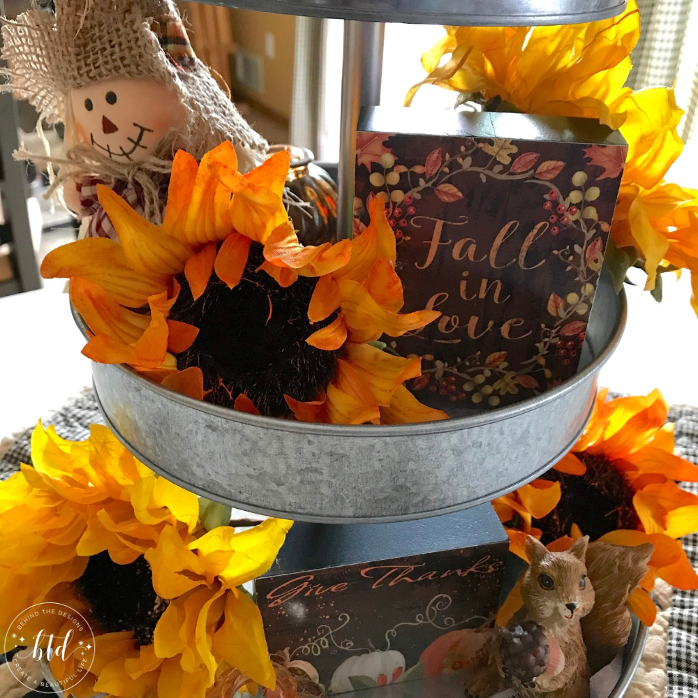 Fall Tiered Tray Decor in Farmhouse Sunflowers
