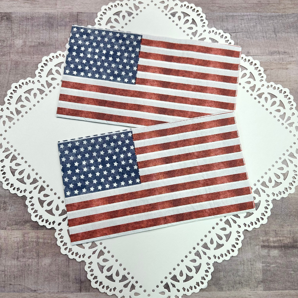 Want to create your own mixed media flag napkin page? You can now purchase a set of these American flag napkins at the BTD Shop and the product is linked above (stock is limited).