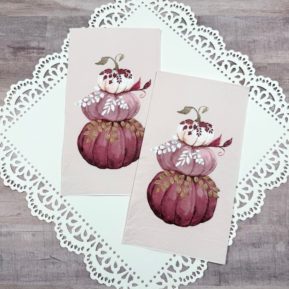 - Burgundy & Pink Stacked Pumpkins Napkins